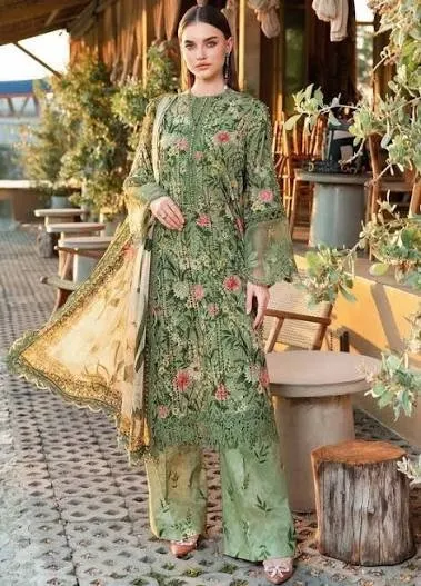 Premium embroidered 3-piece suit featuring detailed neckline, sleeve borders, and a beautifully crafted dupatta. Ideal for festive and formal occasions.